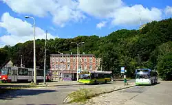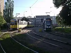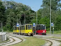 The Szczecin tram system is a 12-line, standard gauge tramway system in Szczecin, Poland, that has been in operation since 1879 (when the town was Stettin, Prussia). The tramway operates on 65 kilometers (40 mi) of route. There are two depots and twelve balloon loops (including five street ones). Daytime lines (night lines were abolished in 1996) are operated by the company Tramwaje Szczecińskie (Szczecin Tramways), on behalf of the ZDiTM (Zarząd Dróg i Transportu Miejskiego; Road and Public Transport Administration). There is also a tourist line operated by the Szczecin's Association of the Enthusiasts of Public Transport.