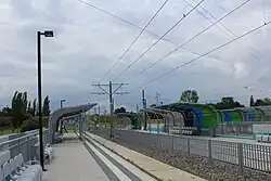On 29 August 2015, the first stage of a new, grade-separated extension called Szczecin Fast Tram (pl:Szczeciński Szybki Tramwaj) opened, extending the Szczecin tram beyond the right bank of the East Oder and the Port of Szczecin to the southeastern neighbourhood of Osiedle Słoneczne via Szczecin-Dąbie Airstrip and its associated request stop. The route is planned to extend into Bukowe-Klęskowo neighbourhood in the near future.