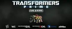 Transformers: Prime – The Game is a brawler video game based on the Transformers: Prime animated series, itself based on the Transformers franchise. It was developed by Now Production, published by Activison, and released for the Wii, Wii U, Nintendo 3DS, and Nintendo DS in October–November 2012.[1][2] The game's main storyline sees the Autobots on Earth, referred to as "Team Prime" and consisting of Optimus Prime, Arcee, Bulkhead, Bumblebee, and Ratchet, along with their human companions Jack Darby, Miko Nakadai, and Rafael "Raf" Esquivel, once again facing off against their rivals, the Decepticons, led by Megatron, and attempting to stop them from freeing an ancient and powerful Transformer known as Thunderwing.[1][2][3]