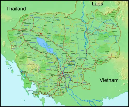| National Highway 3 | 10003 | 202.00 km | 125.52 mi | Phnom Penh | Kampot - Veal Renh (NH4) |
