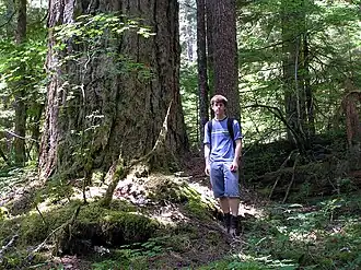 ![]() Old growth with hiker in Trapper Creek Wilderness | |