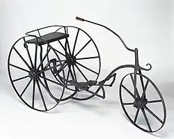 Treadles were used before the advent of highwheelers on Thomas McCall's velocipede, on highwheelers themselves in an attempt to address safety issues,[1][2] on alternative configurations of highwheelers,[3] and on the first device called a safety bicycle by British engineer Henry J. Lawson in 1876.[4] Some inventors even combined treadles and chains on the same bicycle.[5][6]