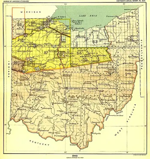 - ^ Part of the treaty area in Indiana is off the map to the upper left.