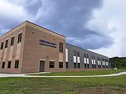 In July 2021, a new 66,000-square-foot building broke ground on 27 acres next to Tri-County Community College (TCCC). This building was for the new Cherokee County Schools of Innovation (CCSI), which not only houses TCEC, but also The Oaks Academy (TOA) vocational school, and the Cherokee County Schools Career Academy. The building was designed by LS3P Architects.[5] Alissa Cheek was tapped by then superintendent Jeana Y. Conley to be head of the project. Cherokee County Schools hosted a ribbon cutting ceremony on August 22, 2023, for CCSI, in which Cheek and Conley (after her 2022 retirement) attended. Conley and the current chair of the Board of Education Shannon Raper cut the ceremonial ribbon. Current superintendent Keevin Woody seemed to be absent according to photos of the ceremony, although it is possible that Woody was the picture-taker. The new school's first day of classes was August 29, 2023.