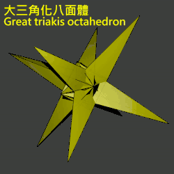 • Wenninger, Magnus (1983), Dual Models, Cambridge University Press, doi:10.1017/CBO9780511569371, ISBN 978-0-521-54325-5, MR 0730208 (The thirteen semiregular convex polyhedra and their duals, Page 17, Triakisoctahedron)