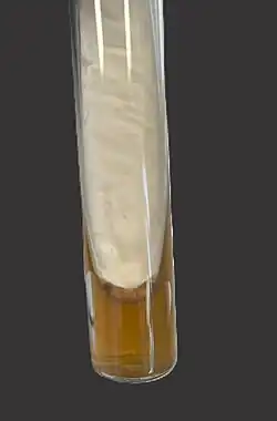 | Culture of Trichophyton indotineae on Sabouraud agar in a tube (front above, and back, below). | |