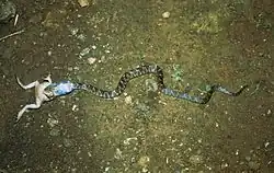They are nocturnal and secretive, spending most of their time in rock crevices, and other areas difficult for potential predators to access. Their diet consists of lizards, small rodents, frogs, and bats. Their venom is not considered to be harmful to humans.