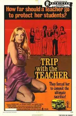 Trip with the Teacher is a 1975 exploitation film written, produced and directed by Earl Barton.[2][3] The film has been retitled several times and has been referred to as Deadly Field Trip (VHS release), Duell bis zum Verrecken (Germany), Kiss the Teacher...Goodbye (American promotional title), and Stupro selvaggio (Italy).