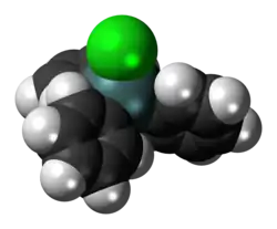 Triphenyltin chloride is an organotin compound with formula Sn(C6H5)3Cl. It is a colourless solid that dissolves in organic solvents and slowly reacts with water.