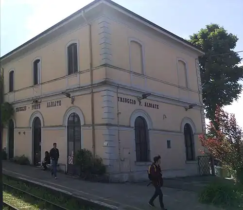 Triuggio–Ponte Albiate railway station is a railway station in Italy. Located on the Monza–Molteno railway, it serves the municipality of Triuggio in Lombardy. The train services are operated by Trenord.