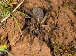Trochosa robusta is a wolf spider species with a Palearctic distribution, ranging from western Europe to Japan. In Europe, it is common north to Germany and Poland, and it also occurs in the Baltic countries and in England. The spiderlings can spread by ballooning and it has only recently established itself in Denmark where first observed in 2015 and restricted to south-facing slopes on the island of Bornholm. This heat-loving species is not known from elsewhere in the Nordic countries, but it is expected that it may spread further with increasing temperatures.[1]