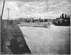 Frank W. Hawley converted a conventional steam-driven canal boat into a trolley boat and demonstrated its benefits and limitations 1893 on the Erie Canal. It had two electric motors with 19 kW (25 hp) each, which drove the propellers.[1]