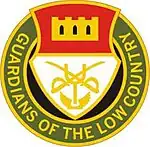 The 713th Cavalry continued to exist as a parent regiment after the United States Army Regimental System (USARS) was implemented for the Army National Guard on 1 June 1989. On 1 October 1991, it reflagged as the 202nd Cavalry, consisting of Troop B at Beaufort.[1] The regiment was not authorized a coat of arms or a distinctive unit insignia.[2] Troop B eventually became known as the Guardians of the Lowcountry after the region that the unit was stationed in. On 1 September 2008 Troop B, 202nd Cavalry was converted into the 131st Military Police Company of the 51st Military Police Battalion as a result of the elimination of the 218th Infantry Brigade.[8]