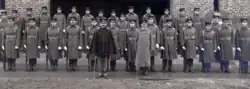 Within a few months after its return from Mexican border service, Troop B was again mobilized due to United States entry into World War I.[9] On September 19, 1917, it was redesignated for federal service as Company B, 116th Trains, Headquarters, and Military Police, 41st Division and deployed to France.[9]