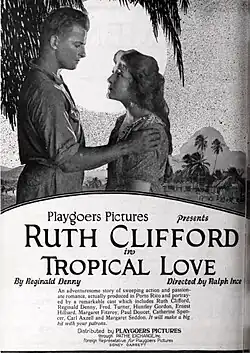 Tropical Love is a 1921 American silent drama film directed by Ralph Ince and starring Ruth Clifford, Reginald Denny and Huntley Gordon.[1] It was partly shot on location in Puerto Rico.