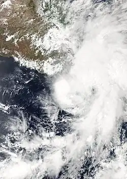 ![]() Tropical Storm Beatriz at peak intensity off the coast of Oaxaca on June 1. | |