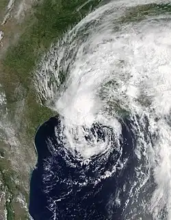 ![]() Tropical Storm Cindy at peak intensity off the Louisiana coast on June 21 | |