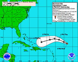 ![]() Ike near peak intensity, northeast of the Leeward Islands on September 4 | |