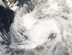 Tropical Storm Julio was a tropical storm that made landfall on the southern tip of Baja California Sur in August 2008. The eleventh named storm of the 2008 Pacific hurricane season, it developed from a tropical wave on August 23 off the coast of Mexico. It moved parallel to the coast, reaching peak winds of 50 mph (85 km/h) before moving ashore and weakening. On August 26 it dissipated in the Gulf of California. Julio was the third tropical cyclone to make landfall in the Eastern Pacific tropical cyclone basin during the season, after Tropical Storm Alma, which struck Nicaragua in May, and Tropical Depression Five-E, which moved ashore along southwestern Mexico in July. The storm brought locally heavy rainfall to southern Baja California, killing one person and leaving several towns isolated. Moisture from Julio reached Arizona, producing thunderstorms, including one which damaged ten small planes in Chandler.[1]