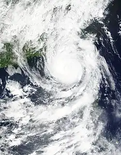 ![]() Tropical Storm Linfa at peak intensity southwest of Taiwan on July 8 | |