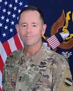 Troy D. Galloway is a retired United States Army major general who last served as the Deputy Commanding General for the Army National Guard of the United States Army Forces Command from August 1, 2021, to May 1, 2023.[1] He most recently served as the Deputy Commanding General for Operations of the First United States Army from May 1, 2019, to April 2021. Previously, he served as the Deputy Commanding General for the Army National Guard of the United States Army Combined Arms Center.[2][3][4][5][6]