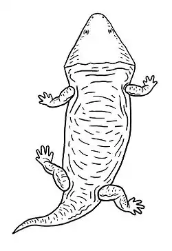 - ^ Dias-da-Silva, S.; Marsicano, C. (2011). "Phylogenetic reappraisal of Rhytidosteidae (Stereospondyli: Trematosauria), temnospondyl amphibians from the Permian and Triassic". Journal of Systematic Palaeontology. 9 (2): 305–325. doi:10.1080/14772019.2010.492664. hdl:11336/68471. S2CID 84569779.