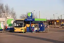 A truck stop (known as a service station in the United Kingdom,[1] a travel center by major chains in the United States and a roadhouse in rural Australia) is a commercial facility which provides refueling, rest (parking), and food and other services to motorists and truck drivers. Truck stops are usually located on or near a busy road.[2]