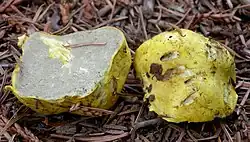 The potato-like T. citrina is up to 7 cm broad. The spore mass is yellowish, darker in age.[3] One field guide lists T. citrina as edible.[4] David Arora cites one story that it may leave a licorice-like aftertaste that can persist for hours.[3]