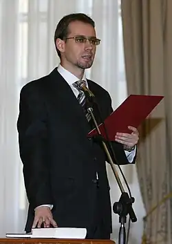 From January to December 2008, he returned to the prime minister's chancellery as an adviser on matters of justice, home affairs and anti-fraud.[2] He first appeared before DNA that February, insisting after an hour-long meeting with prosecutors on the political nature of the charges.[20] That November, he was elected to the Chamber,[21] where he serves on the justice, discipline and immunity committee, as well as on the joint committee on European affairs.[22]