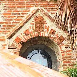 | Molded bricks containing various symbols such as roosters, papal tiaras, keys, gods, sun, moon, Marian symbols and symbols of the Dominican order[4] | Found on both interior and exterior of the structure outlining windows and columns |