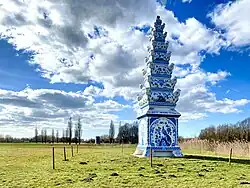 A tulip vase, or pyramid vase, is a vase designed to put cut flowers and especially tulips in, but it primarily serves as a decorative showpiece. They were first made in the Netherlands in the 17th century and were decorated with Delfts blauw or Chinese decoration. Replicas of the original tulip vases were made in China and were imported by the Dutch East India Company.