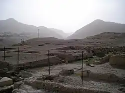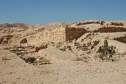 After the Yom Kippur War in 1973, extensive excavations were conducted on site by archaeologist Ehud Netzer. The excavations continued for ten seasons and covered an area of 30 hectares. The excavations also revealed remains of aqueducts to the west of Jericho. At the oasis of Jericho, Netzer uncovered new wings of Herod's winter palace, as well as a Hasmonean (Maccabean) winter palace containing a number of swimming pools and gardens.[4] The complex includes what Netzer identified as a synagogue, built 70–50 BC and as such one of the oldest synagogues ever found.[5]
