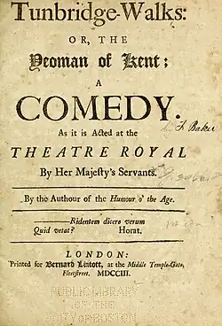 Tunbridge Walks, or the Yeoman of Kent is a 1703 comedy play by the English writer Thomas Baker. It starred the droll actor William Pinkethman in a leading role.