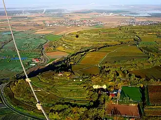 ![]() Southern part of the Tuniberg with the Erentrudis chapel and the golf course. | |