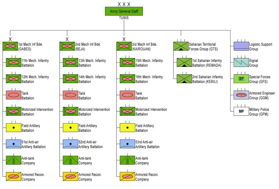 Main Tunisian Army formations are as follows :