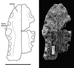 Turanosuchus is an extinct genus of paralligatorid crocodyliform. It is based on PIN 2229/507, a partial lower jaw consisting of the area where the two halves of the lower jaw meet (mandibular symphysis). This specimen was found in rocks of the lower Santonian-age Upper Cretaceous Bostobe Svita of Shakh-Shakh, southern Kazakhstan. Turanosuchus was described in 1988 by Mikhail Efimov. The type species is T. aralensis.[1] Halliday et al. (2015) revised the material attributed to T. aralensis and concluded that it represents non-diagnostic neosuchian material, and as such the genus was considered to be a nomen dubium.[2]