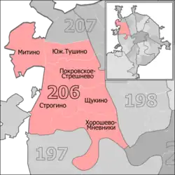 The Tushino Constituency (No.206[a]) is a Russian legislative constituency in Moscow. It is based in North-Western Moscow.