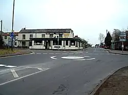 The expansion of Tutshill had begun by 1828 when building-plots north-east of the crossroads were sold, and by 1843 there were houses extending along the roads to the north and east with the Cross Keys Inn at the corner.[3] By 1856 Tutshill was already a minor centre with two public-houses, a shop, a post office, a solicitor's office, and a private school.[3] By this time the growing population of the Tutshill and Woodcroft area of the parish was recognized by the building of a church and a school on the road between the two hamlets. The church, dedicated to St. Luke, is a Gothic stone building comprising a nave with a bellcot at the south-eastern corner, a chancel, and a north aisle added in 1872.[5] There was another period of expansion in the late 19th century and early years of the 20th, and there was a major increase in the population in the middle years of the 20th century when new housing-estates were built.[3]