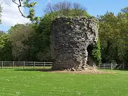 The name Tutshill is first attested in 1635, as Tutteshill, with the spelling Tutshill first appearing in 1655. The second element of the name is agreed to have originated in the Old English word hyll ('hill').[1] The first element of the name could derive from a word *tōt, thought to have existed in Old English, meaning 'a look-out'.[1] This explanation has given rise to suppositions that the place owes its name to a ruined watchtower on top of the hill overlooking the River Wye and its ancient crossing point at Castleford, also having a distant view of the River Severn and its estuary. However, the ruins are of uncertain date, and although they have been supposed to be from an Anglo-Norman watchtower linked to Chepstow Castle, they may also be from a later windmill (a windmill overlooking the Wye above Chapelhouse Wood is recorded in 1584);[2] this windmill may have been later adapted as a folly, leading to a local tradition that the ruined mill had been a look-out tower.[2] In any case, to explain the s of Tutshill, the word *tōt would have to have been in the genitive case, and there seems to be no parallel for the use of that word in this way. The name is therefore thought by scholars to take its first element from an Old English personal name Tōt or Tutt. Thus the name originally meant 'Tōt's hill' or 'Tutt's hill'.[1]