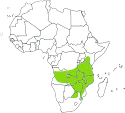 - Tuxentius calice calice — South Africa, Zimbabwe, Mozambique, Botswana, Zambia, southern Zaire (Shaba), Angola, Malawi, southern Tanzania