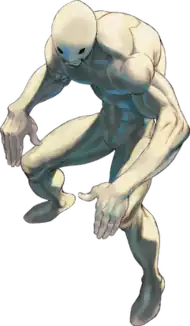 Twelve is a mutated humanoid from the Mediterranean who first appeared in the fighting game Street Fighter III: 3rd Strike, and is the first of a series of mass-produced models of the same kind.[2] A living bioweapon created by Gill's Illuminati, he was created to be a stronger version of the character Necro. Twelve's body is fluid and capable of shape shifting into various forms or generating weapons from his limbs. While his memories are reset after each mission, unknown to his creators he is steadily becoming self aware.[7] Twelve speaks in binary code, and his original mission was to recapture Necro and Effie for the Illuminati.[2] Twelve is voiced by Lawrence Bayne.[1]