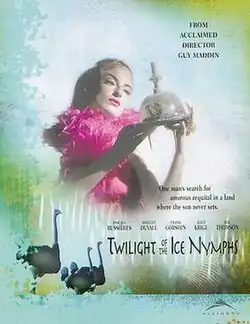 Twilight of the Ice Nymphs is a 1997 fantasy romance film directed by Guy Maddin. The screenplay was written by George Toles and inspired by the novel Pan (1894) by Knut Hamsun, with an additional literary touchstones being the short story "La Vénus d'Ille" (1837) by Prosper Mérimée.[1] Twilight of the Ice Nymphs was Maddin's second feature film in colour and his first shot in 35 mm, on a budget of $1.5 million.[1] As seen in Noam Gonick's documentary Waiting for Twilight, Maddin was dissatisfied with the filmmaking process due to creative interference from his producers.[2]