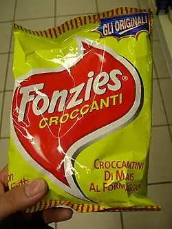 Twisties are also sold on the European market with the name 'Fonzies',[46] inspiring its name from the character Arthur Fonzarelli (nicknamed 'Fonzie') from the popular television sitcom Happy Days. [47]