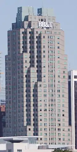 In late 2021, the building's iconic BB&T logo was replaced with that Truist Financial, the company that formed from the merger of BB&T and SunTrust Bank.