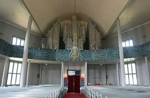From 1707-1708, a new church was built beside the new cemetery southwest of the old church. When the new church was finished, the old church was torn down. The new church did not last very long. In 1792, the church caught fire because of the careless handling of an open fire during a wedding in the church. The church was a total loss. Afterwards, there was talk of building a stone church, but this was too expensive. Peder Ellingson was hired to design the new wooden, octagonal building. The new church was consecrated in 1795.[3][5]