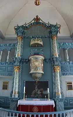 In 1814, this church served as an election church (Norwegian: valgkirke).[6][7] Together with more than 300 other parish churches across Norway, it was a polling station for elections to the 1814 Norwegian Constituent Assembly which wrote the Constitution of Norway. This was Norway's first national elections. Each church parish was a constituency that elected people called "electors" who later met together in each county to elect the representatives for the assembly that was to meet at Eidsvoll Manor later that year.[6][8]