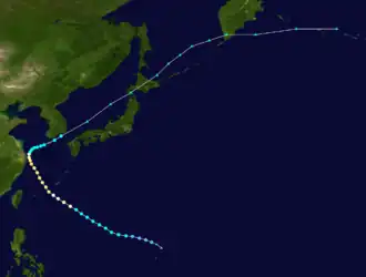 - ^ a b c d Japan Meteorological Agency (2014). "Typhoon 198118 (Agnes) – Detailed Track Information". Digital Typhoon. National Institute of Informatics. Retrieved September 15, 2014.