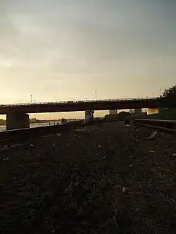 The water level of the Tama River exceeded dangerous level because of the heavy rain by Typhoon Fitow.[18] Rainfall rates peaked at 66 mm/h (2.5 in/h) in Miyagi Prefecture and the highest accumulation was 694 mm (27.3 in) in Tokyo.[19] Twenty-nine people were rescued from sandbanks on the Tama River on September 7 after the storm impacted Japan with powerful winds and heavy rain.[18] At least 80,000 people were left without power as high winds from Fitow knocked down power lines.[15] A 76-year-old man was killed[20] when a tree limb fell on him.[15] Several homes were reportedly destroyed by the typhoon.[20] Three people were killed and 87 others were injured by Fitow throughout Japan. Heavy rains triggered 527 landslides throughout the country. Fourteen structures were destroyed, 62 were damaged, and another 1,941 were affected. A total of 17,037 hectares of farmland was damaged or destroyed by Fitow. About 1,113 km of roads, 1 km of railway, 14 ports, seven bridges, and six dykes were damaged. A total of 229,916 families were left without power at the height of the storm of which 4,010 also lost water supply. Nineteen ships sank during the storm. Agricultural losses amounted to $137 million (2007 USD).[21] Total damages from the typhoon were estimated at $1 billion (2007 USD).[22]