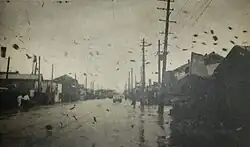 Major flooding was spotted in the Mukojima Islands, Uji, Kumiyama, Kyoto, and other nearby areas.[8] In response to the typhoon, the United States set up shelter to help Japan recover from the typhoon, killing one American.[9] Americans also reported at the United States Air Force Base in Itami, experiencing strong winds and high floods.[10] The Contra Costa Times called the storm was a "furious, drunken woman in the lobby of a hotel".[11] In a city near Osaka, one-third of the city was flooded.[12] Eventually, soldiers were told to be evacuated.[13] In addition, the Yodo River overflowed, flooding 5,000 homes, from which most of them were flooded up to the second floor.[14]