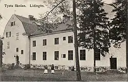 Tysta skolan was founded in 1860 by Jeanette Berglind, an educator who had previously worked at the Institute for the Blind and Deaf-mute at Manillaskolan. The school's home for deaf-mute children was initially housed in a cramped three-room apartment and kitchen at Norrlandsgatan 33, but moved in 1862 to more suitable accommodations in the Loviseberg ore yard at Stora Gråbergsgatan 25.[1][2] Thanks to generous donations from patrons including King Charles XV and Queen Lovisa, the school was able to acquire artist Maria Ruckman's large property at Norrtullsgatan 51–57 (then 25) on the city's rural fringes in 1866. It consisted of several buildings, including the Altona inn, renamed by Carl Michael Bellman and converted into a school building, and a large area of land.[3]